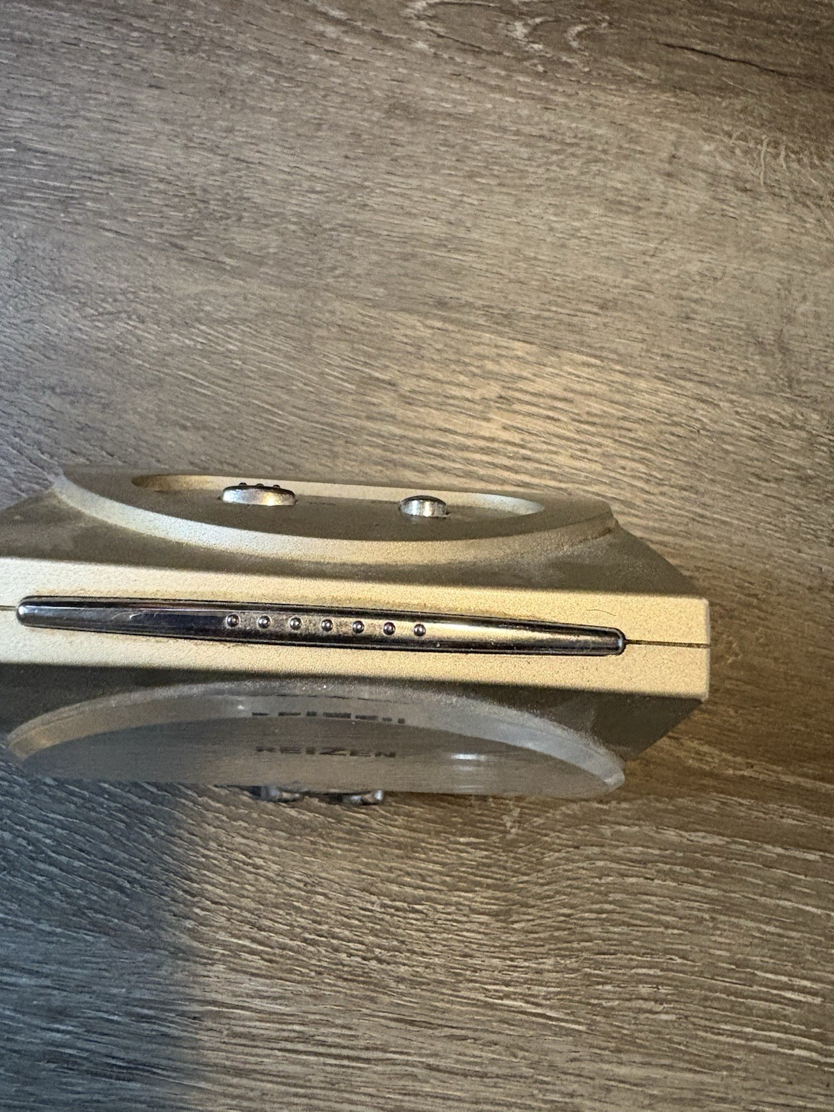 The Reizen Talking Atomic Alarm Clock is a modern square-shaped digital clock powered by batteries. Manufactured in 2007, it features a talking alarm with atomic accuracy, making it ideal for adults in various rooms such as the bedroom, living room, or home office. The clock has a sleek silver finish with plastic construction, displaying Arabic numerals and housed in a compact unit measuring 5 x 5 x 4 inches. With a unique character and theme, this talking clock by REIZEN is a practical and stylish addition to any home.