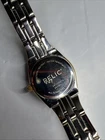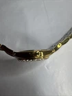 The Relic by Fossil Women's ZR11775 Queen's Court two-tone watch features a stylish design with a gold bezel and a white mother-of-pearl dial accented by Arabic numerals and baton indexes. This dress/formal watch has a stainless steel bracelet with a jewelry clasp closure and a sleek round case in silver with a polished finish. It is water-resistant up to 165 feet, has a date indicator, and operates on a quartz movement, making it a functional and fashionable accessory for women.