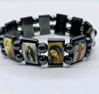 Religious Hematite Stretch Bracelet with Pictures Saints Jesus #2