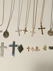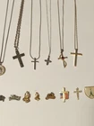 Huge Religious Jewelry lot Includes 13 Necklaces 1 Rosary 3 loose Crosses 13 pins **All pieces are 100% wearable ** Some pieces are 925 sterling