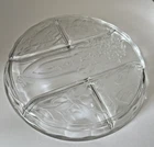 Vintage Relish Vegetable Tray Round 10.5 in Embossed Frosted Divided Heavy Good Condition - No chips or cracks - see pictures for details Embossed and Frosted, Shrimp,FIsh,Celery,Olives,Cucumbers Designs Please contact me with any questions