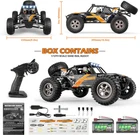 【Ideal Remote control car】Accelerated by 390 motor and 7.4V powerful batteries, this RC car reaches speed at 38KM/H and 260 feet radio control range. Our Protector remote control car permits an over 30 mins playtime with two rechargeable batteries among which the one in the vehicle and ther other in the gift box, ideal large RC truck for family off-road racing fun. 【RC trucks 4x4 off road waterproof 】Full proportional 2.4GHz radio controlled system performs with no signal interference. IPX4 waterproof electronics feature anti-block, overcurrent , and low voltage cutoff protection. It will cast a spell on users at different ages, a perfect remote control car for boys and adults. 【4WD all terrain】Four wheel drive chassis employs metal diff., ball bearings, high grip tires, full scale roll cage , four top LEDs and serviceable spare wheel with which it make it look like attractive RC crawlers. Sand, concrete surface, beaches, on-road and off-road terrains are all accessible by this RC buggy. 【RC Hobby Car Fullfilment】This RC vehicle is built by a Hobby RC Car manufacturer with 15 years experience in specialized technological fullfilment with electric cars ,nitro rc cars, and gas powered rc cars. This remote control truck has a good combination of refined materials and exquisite design in finest workmanship. 【Handsome X-mas gifts】This radio control car will please if you are seeking holiday gifts for kids and adults. Putting aside Smartphone ,our RC off road car grow kids interest and develop their manual abilities better than toy RC cars. All service parts are available on Amazon, our customer support team stand by 24/7. Product Description Metal Driveshafts and Front/Rear Differential Gear Sturdily constructed and all gears inside are well lubricated, which is of high reliability. high torque, low noise, and solidly constructed The quality magnetic 390 motor, powerful and efficient, delivers a rotation rate for over 21000r.p.m Digital 3-wire steering servo holds 2.2KG torque. It features high reliability, stability, strong adaptability, low noise, and slight vibration. 1 Metal Drivetrain 2 390 Motor with Heat Sink 3 3-wire Servo 2.4GHz Electronic System Long range transmitter and splash waterproof ESC fulfill good practices, low voltage cutoff and anti-block protection embodied. Front/Rear Oil Shocks Spring tensions and travels are adjustable on these aluminum capped oil filled shocks PVC Body with Roll Cage The full scale roll cage looks aggressive, which makes it easy to unfold to get quick access to chassis. Four wheel drive chassis This 4x4 vehicle has a streamlined chassis design, a 4x4 drive train with the gear differentials, solid and long-lasting.