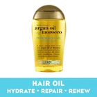 Renew hair with this argan oil of morocco penetrating hair oil treatment Ideal for all hair types, the hair oil helps seal in nutrients and shine to locks, leaving hair strong and silky smooth RENEWING HAIR OIL: The 3.3-ounce container of OGX Renewing + Argan Oil of Morocco Penetrating Hair Oil Treatment gives hair a renewed look and feel of silky perfection and radiant shine HAIR CARE FOR ALL TYPES and TEXTURES: Ideal for all hair types, textures and moisture levels, this rich hair oil helps to penetrate the hair shaft while renewing and softening locks HAIR CARE INSPIRED BY NATURE: This precious blend with rich cold-pressed Moroccan argan oil helps moisturize and revive strands, giving hair a natural boost Plus, the citrus-fresh, floral-green and woody scent leaves hair smelling irresistibly good NON-HARSH and NOURISHING: Free from parabens, the sulfate-free surfactant haircare system is gentle for use on all hair types and textures to help improve strength and elasticity while creating soft, touchable tresses Strengthen and renew hair with OGX Argan Oil of Morocco Penetrating Hair Oil Treatment. Ideal for all hair types and textures, the rich hair oil helps penetrate the hair shaft while renewing and softening hair. Formulated with a hydrating blend of rich cold-pressed Moroccan argan oil, it helps revive hair to leave it nourished and silky smooth. A nourishing hair oil seals in nutrients and shine to help improve hair strength and elasticity, leaving you with touchable tresses that are soft but strong. Plus, the citrus-fresh, floral-green and woody scent makes hair care an all-around sensory experience and leaves locks with an irresistibly good smell. Free of parabens and sulfated surfactants, this hair oil for damaged hair is gentle enough to give locks a radiant shine from the inside out. For a full hair care routine that'll leave your hair lush and divinely shiny, pair with Renewing + Argan Oil of Morocco Shampoo and Conditioner and other OGX Moroccan oil hair products.