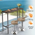 Rengue 37.6'' Pub Height Bar Table, Rectangle Narrow Outdoor Counter Heith Bar Table with 110lb Wood-Like Metal Tabletop for Hot Tub, Garden, Balcony, Poolside, Indoor, Backyard, Patio