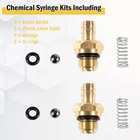 Feature 【Compatible】 Pressure Washer Soap Syringe Kit is compatible with pumps 190593GS, 190635GS and 203640GS. (1/8'' -27 BSP male thread) 【Replacement method】 Remove the old fuel injector with a wrench. Remove any sticky or dry soap from the container. Make sure the rubber o-ring is on the injector as shown. Put the ball bearing in the injector, and then use the spring on the small end of the spring against the ball bearing. Insert the injector into the socket and use a 13mm wrench to tighten the injector. Do not overtighten or it will damage the o-rings or crack the white metal on the pump. 【Function】 If parts on your high pressure washer pump are worn, rusted, or clogged with hard water deposits, you can replace it with this set. This will make your high pressure washer pump smoother to use. 【Package contains】 2 chemical syringe kits including 2 brass barbs, 2 check valve balls, 2 springs, 2 O-rings. 【Satisfaction Guarantee】 Provides a 100% satisfied after-sales service. If you are not satisfied with it, simply return it within 30 days for a full refund. Premium Support 1 year Warranty. Pacakage Inclued 1*Pressure Washer Chemical Soap Injector Kit
