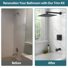 Replacement 12" Rainfall Shower Faucet Tub Trim Kit for Delta 13/14 Series (Valve& Catridge Not Inclued) (With Tub Spout, Matte Black) 12” Rainfall Shower Head: Our luxury bathroom rainhead is the perfect replacement that deliver a high-pressure rainfall of hot water that drenches your entire body. After experiencing this, you'll never want to return to a regular shower again. Rough& Cartridge NOT INCLUDED - This trim kit compatible with Delta valve: R10000-UNBX, R10000-UNBXHF, R10000-UNWS,R10000-UNWSHF. You need purchase RP46074 or RP19804 to completely remodel.It's also a affordable choice for renovation youself to get rid of old shower. Easy DIY Project - Want to spruce up your shower area on your own? Look no further! Our easy-to-follow instructions are tailored for beginners, ensuring that even novices can tackle this project with confidence.This project is a great way to boost your experience and confidence. What Included - It has a 12“ rainfall shower head, a shower arm with flange, a tub spout and a trim kit (Valve& Catridge Not Inclued). Warranty: We offer a 1-year warranty on this product, and if you have any questions or concerns, please don't hesitate to contact us anytime.