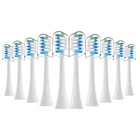 High compatibility with snap-in/click-on toothbrushes: Electric toothbrush replacement heads are compatible with Philips Sonicare toothbrush heads electric handles(Snap-On System) US DuPont bristles: Our brush heads are made with DuPont bristles, the most representative of high quality nylon bristles. DuPont bristles have the following main advantages: high toughness, strong bending recovery, outstanding abrasion resistance and perfect cleaning power. The bristles are particularly gentle and comfortable for teeth and gums Effective Cleaning: The electric toothbrush head's contoured top bristles naturally conform to the shape of your teeth, while the slim, angled neck and dense bristles reach hard-to-clean areas. The combination of dense bristles and powerful vibrations of the toothbrush head cleans up to 8 times more effectively than a manual toothbrush. Indicator Bristle Tip: We recommend replacing the brush head once in three months. The brush head will become less effective after 3 months of use, but we'll remind you before that happens. The color of the indicator brush head will fade, reminding you that it's time to replace your toothbrush head to ensure your most effective cleaning. Buy with confidence: You'll get 10 premium toothbrush heads with 10 hygienic storage and travel caps for cleaner, easier storage and travel, the highest quality brushing for your whole family for the long haul, and our friendly customer service. So, if you have any questions, please feel free to contact us.