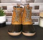 The Report Upton Duck Boots for women are stylish and practical footwear designed for cold and wet weather. Featuring a brown color with fur trim accents, these lace-up boots have a round toe shape and a 1-inch platform height. The boots are insulated with wool flannel lining, making them suitable for winter, fall, and spring seasons. With a comfortable flat heel style and ankle shaft design, these waterproof boots are perfect for travel, activewear, or casual occasions. Ideal for outdoor activities, the Report Upton Duck Boots offer both warmth and comfort.