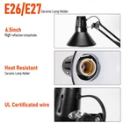 【Height Adjustable】:This reptile heat lamp features four adjustable connecting rods to quickly adjust six different heights ranging from 17.5 inches to 74.3 inches. This makes the heat lamp for reptiles compatible with all sizes of reptile enclosures. You can easily adjust the reptile light to different heights to provide optimal lighting and temperature conditions for your pets, such as bearded dragons, turtles, lizards, snakes, chickens, and more! 【Highly Reflective & E26/E27 Ceramic Lamp Head】:The reptile heat lamp fixture is 6.5 inches wide and 6.3 inches high with high reflectivity (bulb not included). The inner layer of the lampshade is made of high-quality aluminum alloy material with a thickness of 1mm. Reptile light fixtures are carefully polished to effectively reflect heat and increase brightness. E26/E27 ceramic lamp holder has good heat resistance, and the UL certified wire is safe and durable. Making it suitable for most reptile heat lamp reptile bulbs; also can be used as floor lamps, plant grow lights in your home.Paired with the included clamp stand, it can also be used as a desk lamp. 【Multi-angle Adjustable Swing Arm】:The reptile light stand can adapt to the lighting needs of different pets. The bearded dragon light is equipped with a unique 180-degree foldable swing arm and can rotate 360 degrees. The angle and extended width of the reptile lamp can be easily and flexibly adjusted. Whether you want to extend your heat lamp fixture to a specific angle or position, you can easily do it to make your reptile more comfortable! 【Stronger Stability and Bearing Capacity】:The heat lamp holder is made of high quality materials to ensure long-lasting stability and durability. The thickened connecting rod prevents the terrarium stand from bending or twisting during use, while the wider, weighted base enhances stability and prevents the reptile heat fixture from tipping over. This heat lamp stand for reptiles is an essential tool for reptile enthusiasts to create a comfortable and healthy environment for their pets. 【Easy to Use】:This reptile heat lamp fixture is designed to be easy to install and remove, offering quick assembly without any tools and space-saving storage when disassembled. The reptile stand base is equipped with EVA anti-slip pads that prevent the light stand from tipping over, protecting floors from scratches. The reptile tank stand also comes with ten cable management straps to tie the cables from the reptile light fixtures to the heat lamp holder for a neater stand.