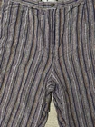 Requirements Pants Purple Colorful Stripe Linen Cotton Blend Boho Festival Pants Flat front, zipper fly and button closure Women's Size 10 Elastic Waist 31 Inseam 27 Hips 42 Inseam 27 Hips 42 inches. 55%Linen 45% Cotton, hand wash and line dry