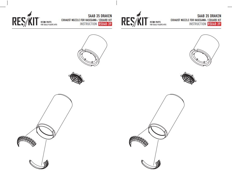Scale: 1:48 Manufacturer: RESKIT Country/Region of Manufacture: Ukraine High-quality details. Paint: Unpainted, Unassembled, Kit do not contain paints and glue. Condition: New in Box Features: Kit Exhaust nozzle for Saab 35 Draken aircraft kit (Hasegawa/Eduard) in 1:48 scale Type of product: Exhaust nozzles Recommended kits: Hasegawa, Eduard Suitable for models: SAAB 35 DRAKEN, SAAB, 35, DRAKEN Quality set, simple assembly. Suitable for experienced modelers, as well as for beginners. Due to the use of modern production technologies, all the details of the model fit perfectly, thanks to this, you can get an excellent result with minimal effort. ----------- This is a plastic model kit. Assembly and painting is required. Paint and glue is NOT included. Item Type: Scale model kit Commodity Attribute: Assembly The model is a plastic assembly model and needs to be assembled and painted by yourself You need an extra purchase of the glue, paint and so on!