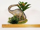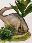 Resin Dinosaur Figure Brachiosaurus 7" X 5 1/2" X 5" Painted. Solid resin is painted and has the added plants for a cool looking scene at the moment there are two available colors and scene may vary but very close Paint it your own colors if you like great display piece.