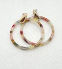 Add a touch of beauty and fashion to any occasion with these stunning resin hoop earrings. The earrings feature a push back closure and come in a multicolor design that is sure to catch the eye. Perfect for any fashion jewelry collection, these earrings are made from high-quality resin and are sure to last. Whether you're dressing up for a special occasion or just want to add a pop of color to your everyday look, these earrings are the perfect accessory. With their unique design and beautiful multicolor finish, they are sure to make a statement. Note: This pair of earrings are very lightweight in great condition! Worn only once! Thank you for stopping by!