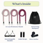 Introducing 's Exercise Bands with Handles for Women - the ultimate fitness companion designed for strength training and physical therapy. They go by many names, like excersing equipment, flat resistance band set, exercise band, weight bands, resistance band bar, excercise bands, door gym, training bands, variable resistance training, resustance bands set, resistant band workout, reaistance bands, exerciser band, cable resistance bands door anchor, resistence band, workout bands with handles, workout banda, tube bands, band exercise resistance, exercise banda, exersize bands, resistance band workout poster, resistance band handles, fitness bands resistance women, long resistance bands for arms, strength bands resistance set, resistance tubing, reistance bands, arm bands for workout, banda de resistencia para ejercicios, door workout equipment, excersise bands, arm resistance bands for exercise, door exercise equipment, resistance cables, arm workout bands, workout exercise band, exercise bands for arms, pink weight bands for exercise resistance, adjustable resistance band kit, leg resistance bands for women, red exercise band, squat resistance bands for seniors, fitness training bands resistance, tube resistance bands with clis, tube bands and ankle straps, exercise straps with handles, flex bands, tension bands for exercise, exercise bands for women, resistance tube, cosas para aser ejercicio, resistance exercise bands, exercise tubes with handles. Whatever you call them, 's physical therapy bands are the most durable and functional! Take them with you on a vacation or attach them to a door in your home for a full body workout! [Complete Set for Full Body Workouts] Our set includes three fabric resistance bands (Light, Med, Heavy), two comfortable handles, two ankle straps, a soft door anchor, and a travel backpack [Comfortable & Skin-Friendly] Our ScrunchKnit fabric sleeves not only look amazing, but they also prevent the rubber material inside the bands from rubbing your skin; perfect for those with sensitive skin [Never Snaps] Our workout resistance bands for women are designed to never snap; Unlike other exercise resistance bands with handles, 's arm bands for workouts set the bar for durability [On-the-Go Workouts] Stay active no matter where you are with our travel-friendly long resistance band set with handles; Our exercise band door anchor can attach the resistant bands to any hotel door [Customizable Resistance] Adjust the training bands' resistance from 10 to 60 lbs by stacking the bands; Use all three resistance tubes with handles for 60 lbs of resistance in your home workout.