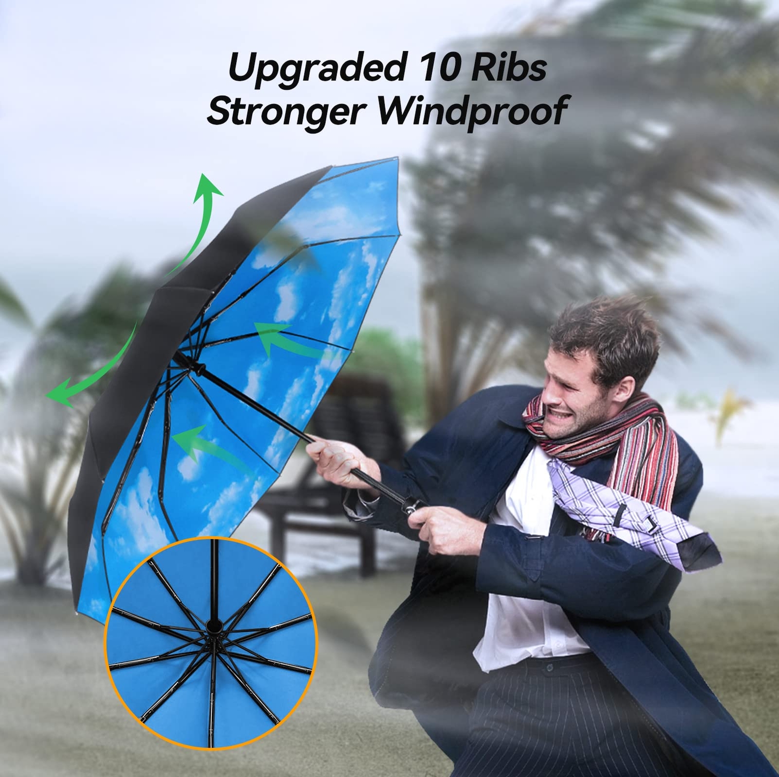 Paraguas plegable resistente al viento y al agua, portátil y automático. Features: 10 VALLAS SÚPER SÓLIDAS Y FABRICACIÓN DE ALTA CALIDAD. El paraguas compacto TechRise está diseñado con 10 varillas flexibles de fibra de vidrio reforzada con resina y varillas de acero galvanizado de alta calidad, resistentes y flexibles para resistir el viento fuerte sin voltearse. PARAGUAS GRANDE Y LIGERO. Este paraguas plegable se abre hasta un diámetro de 104 cm y puede proteger completamente a dos personas de la lluvia. Plegado, mide solo 31 cm. Portátil y ligero (450 g), es fácil de guardar en la mochila, bolso, maletín o equipaje, ideal para hombres y mujeres. Toldo impermeable y de secado rápido. El paraguas de viaje TechRise te protege de la lluvia intensa gracias a su toldo de primera calidad, hecho de tela de alta densidad resistente a impactos y revestimiento impermeable. El paraguas plegable es altamente impermeable y se seca rápidamente. Incluye una funda que mantiene tus bolsos secos. APERTURA Y CIERRE AUTOMÁTICOS. La función de apertura y cierre automáticos permite un manejo sencillo con una sola mano. Solo tienes que pulsar el botón una vez para abrir o cerrar el paraguas en un segundo. Este diseño hace que su uso sea más eficiente y cómodo, y no te causará problemas en días de lluvia. 36 MESES. Ofrecemos 36 meses de garantía a partir de la fecha de compra para el paraguas grande a prueba de viento. Si tienes alguna pregunta sobre el uso del paraguas plegable, no dudes en contactarnos a través del servicio de atención al cliente. SHIPPING We are always working hard to ensure your package arrives as soon as possible. Please understand that some factors like weather, high postal traffic, and the performance of shipping companies are outside of our control. We offer free shipping to the lower 48 states and ship within 3 business days of payment, usually sooner. We do not accept P.O. Boxes. Please provide a physical address.