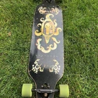 In slightly used condition, still functions perfect with really nice trucks, bearings, and wheels. Board is 150$ new, whole setup was over 300. Ships with extra care the same or next day from a smoke free home! (Check my other listings to bundle and save!) (grip still good but dirty!)