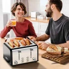 Product details Hello, Welcome to our store! Toaster 4 Slice Toaster Keenstone Stainless Steel Retro Toasters, Bagel, Defrost, Reheat, Cancel Function 6 Shade Settings Removable Crumb Tray Auto Pop-Up, Kitchen Appliances, Apartment Essentials Feature: This Keenstone 4 slice toaster makes two toasters in one with 316 smooth Food Grade Stainless Steel to offer safe and save your time for toasting Each duo has Bagel/Defrost/Reheat/Cancel functions with 6 settings and work independently, so make various tastes is easy. For better toasting results, we strongly suggest using both slots simultaneously. Highlights (Why choose Keenstone® toaster ?) 【4 slice toaster】 - for Family (2 slice only for 1-2 person) 【1.5in extra-wide slots】 Independent Bagel Functions + Basic Function(Cancel / Reheat / Defrost) 【Intelligent Auto control of toasting time】 - But cancel button also lets you quickly pop toast. 【Food Grade Stainless steel】- Safe & Fast & Easy Clean 【High-lift lever】 - This black and silver toaster provides extra-wide slots with self-adjusting guides can handle thick bagels and artisan breads, and the high-lift lever puts everything easily in reach. 【Removable crumb tray】 - The drop-down crumb tray makes cleanup easy and the integrated cord wrap simplifies storage. Easy Cord Storage: [USER-FRIENDLY DESIGN] [SAFE and DURABLE] [Easy To Clean] Multi-function Toasters 4 Slice Cancel Function: Stop toasting at any time you need. Defrost Function: Defrosting bread, and defrost mode plus 20 secs. Reheat Function: Reheat mode heat 30 secs on selected gear. Bagel Function: One side toasting, toasting the cut side of the bagels. 【6 Different Browning Levels】 6 different shades for you to choose from different tastes. Level 1-2: Light shade of toast. Level 3-4: Medium shade of toast. Level 5-6: Dark shade of toast. Specification: Brand: Keenstone Color: Black & Silver Material: Silver 316 Food Grade Stainless Steel & Black High Quality Plastic (Anti scalding) Power cord: 25.6" (Bottom storage design) Size: 16.50 x 10.50 x 7.50 Inches Weight: 2.59 lb Suitable: Gift for Mom, Family, People who love bread Occasion: Home, Office, Breakfast Shop, Toaster Shop, Bread Shop Package Include: 1 x Keenstone 4 Slice Toaster, 1 x Manual Toaster 4 Slice Toaster Keenstone Stainless Steel Retro Toasters, Bagel, Defrost, Reheat, Cancel Function 6 Shade Settings Removable Crumb Tray Auto Pop-Up, Kitchen Appliances, Apartment Essentials 4 Slice Toaster Keenstone Stainless Steel Retro Toasters, Bagel, Defrost, Reheat, Cancel Function 6 Shade Settings Removable Crumb Tray Auto Pop-Up This Keenstone 4 slice toaster makes two toasters in one with 316 smooth Food Grade Stainless Steel to offer safe and save your time for toasting