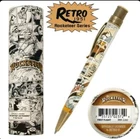 Sealed in tube # 0070. Images are a mix of stock and item for sale. This listing is a New Retro 51 Rocketeer Series Tornado Rollerball Pen. This one features a classic Stonewashed Brass Finish on the hardware and a white pen barrel with the color comic strip graphics, Model #RRR-2260. This is a twist action rollerball pen with black ink. The pen is 5" long with a barrel diameter of .470 and is .350 at the cone. This Series Tornado pens are packaged in a 1951 style Rocketeer Themed box that is loaded with character. The packaging adds to Retro 51 experience. We have added a photo of the packaging with this pen. We are delighted to announce our new line of Officially Licensed collectible pens celebrating the 40th Anniversary of Dave Stevens’ The Rocketeer! We’ve partnered with Okkto and The Rocketeer Trust to bring you five gorgeous new pens, all paying tribute to Dave’s iconic comic book character and exquisite art. Brought to life in 1982 by writer / artist Dave Stevens, The Rocketeer is an exciting and beautifully illustrated homage to the Saturday matinee serial heroes from the 1930s through the 1950s. In 1938 Los Angeles, Cliff Secord, a local racing pilot and barnstormer, discovers a rocket pack hidden by two gangsters fleeing the police. When he decides to take it for a spin, his life is turned upside down – in more ways than one! Cliff's pulpy adventures are set in Los Angeles and New York, and Stevens gave them a retro, nostalgic feel influenced by the King of the Rocket Men and Commando Cody movie serials, as well as pinup diva Bettie Page.