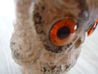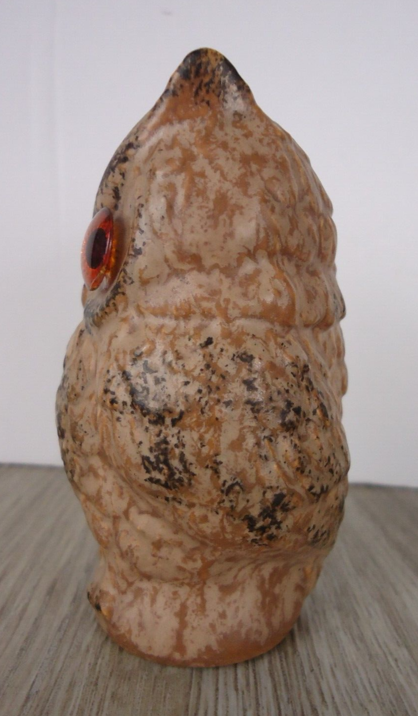 Retro 70s Porcelain Owl Figurine 3.5 Inch Orange Eyes Signed VTG Garden Decor