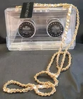 This Retro Cassette Tape Clear Purse is the perfect accessory for anyone looking to add some Y2K vibes to their outfit. With a rectangular shape and a gold and silver handle/strap color, this purse is both stylish and functional. The exterior is made of durable plastic and features a clear exterior color with a music and 80s retro theme. The bag is perfect for travel, parties, or casual outings, and has a crossbody style that allows for hands-free use. The hardware color is gold, and the bag depth and width can be seen in the photos provided. The lining color is also clear, and the brand is heartyTrendy. This purse is a must-have for anyone who loves music and fashion from the 80s.