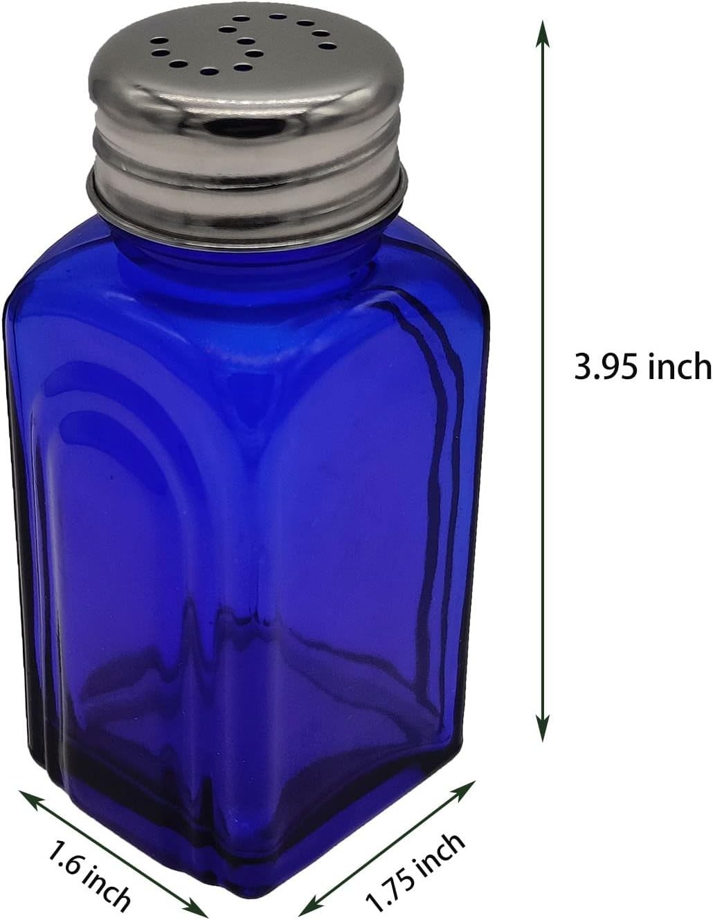 Product Features Material Glass Color Cobalt Blue Item Weight 0.31 Kilograms Shape Rectangular About this Item Attractive, pretty color, made of cobalt glass and stainless lid, not clear glass color painted, and the color will not be fade Nice color to décor your kitchen, remind you of retro shakers Set of 2, the shakers with S/P Stainless Lids Perfect size: shakers measured 1.75 * 1.6 * 3.95 inch, not too big Packed with EPE, so they are not easily broken when shipment Description The shakers are made of blue glass (not painted) with stainless steel lids(S/P) can be screwed Product Details Material Glass Color Cobalt Blue Item Weight 0.31 Kilograms Shape Rectangular Closure Material Stainless Steel Capacity 100 Milliliters Product Dimensions 1.75"L x 1.6"W x 3.95"H Item Weight 10.8 ounces Date First Available March 23, 2023