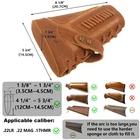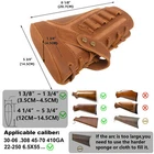【Materials】Original design by wayne'sdog, vintage classic. The gun stock cover is made of high quality first layer crazy horse cowhide and suede cowhide, 6 strands of nylon thread sewing, durable. 【Gun Stock Holster Size】: 8 1/8“ x 5 3/4” x 1 3/4” (20.7cm x 14.5cm x 4.5cm) 【Reduced Cushioning】The cushioning part provides four 5MM neoprene, dramatically reducing the impact on the shoulder during shooting. 【Number of bullet holes】: 【Caliber .308 .30-06 .45-70】Fit for 4 Rounds .308 .40-65 .45-70 .22-250 .30-06 .300WIN, .40-40 .40-60 .40-65 .40-70 .44mag, .45 Long Colt, 7MM REM 6.8 SPC and .410 shotgun bullets as well. 【Caliber .357 .30-30 .38】Fit for 5 Rounds .357, .30-30, .35, .38 .32Win Spcl. 32-40. 【Caliber .22LR .22MAG .17HMR】Fit for 10 Rounds 22LR .22MAG .17HMR 【No Drill Design】The stock holster pr ovides a structure for mounting the shoulder strap with Chicago screws for more durability, avoiding drilling holes in the wooden stock for screws when you need to mount the shoulder strap. 【Note】 Fits most smooth gun rear stocks, if it is a crescent-shaped stock (crescent-shaped stock), you can use your own rags to fill it.