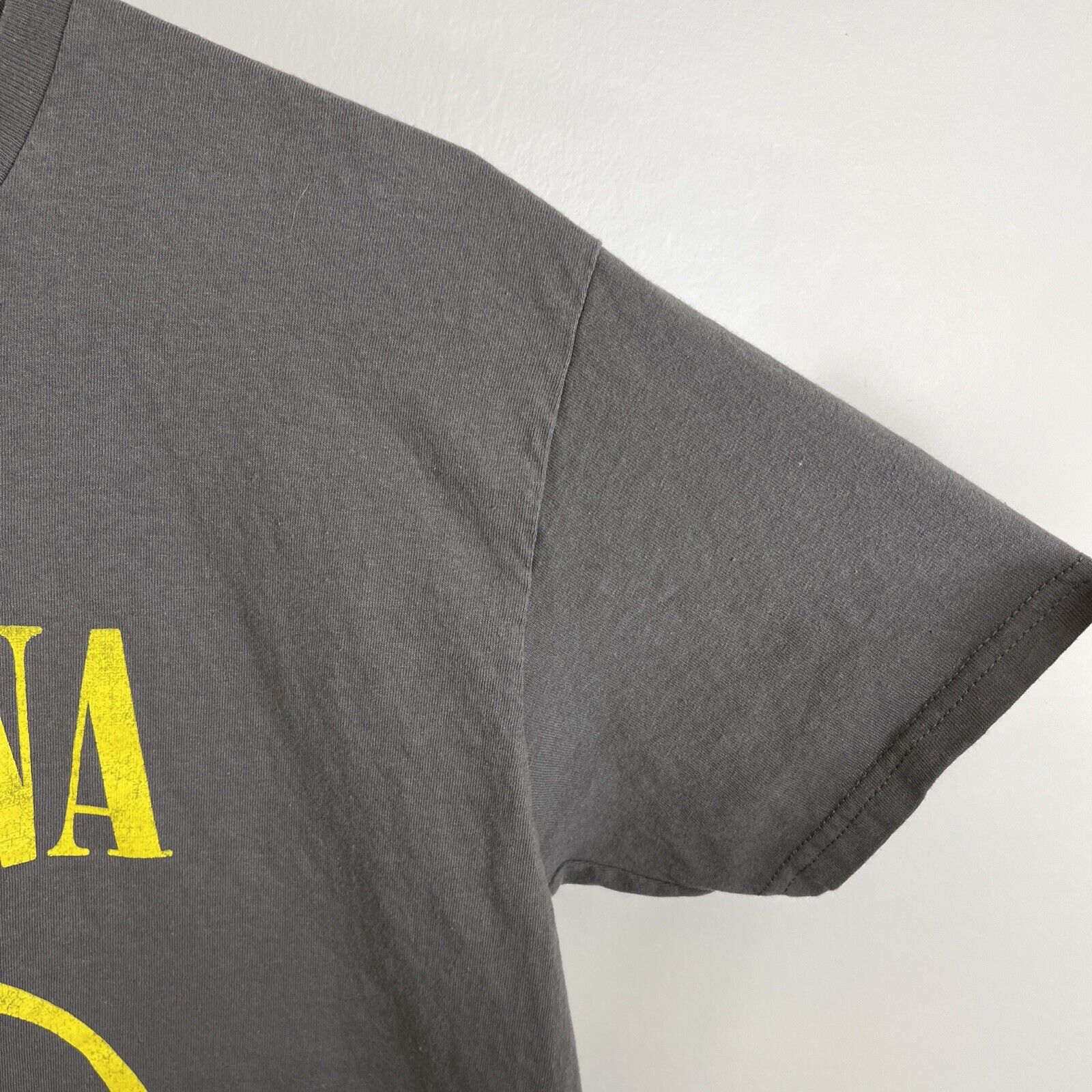 Retro Nirvana Smiley Face T-Shirt Kurt Cobain Grunge retro Band Tee gray adult size large. Condition: good Preowned, no holes. Has a very light line on the back. Not very noticeable. See pictures. Measurements are 20.5” pit to pit and 28” collar to front. Fits a little small. Shipped with USPS ground advantage.