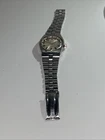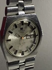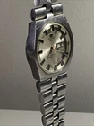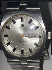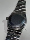 This needs a brand new crystal as the original one has stress & scratch marks to it. The dial is otherwise in very good condition. Unfortunately it’s missing it’s branded ‘T’ for Tissot bracelet, all the original links are there. Has a quick set date mechanism where you push the crown in to advance the date. This does work, but the date doesn’t flip over as it should, however the day & date do advance over when the hands traditionally move past the 12 o’clock position. Case could benefit from a buff to remove the scratches. I don’t have the correct hexagonal steel case back tool to show photos of the movement. The watch is currently working, but appears to be running a good five minutes slowly. Well worth repairing, these watches are becoming increasingly scarce to get up & running on account of the parts being quite hard to find. Offers welcome, & absolutely serious bidders only please. Thank you. Please READ THE DESCRIPTION, & look at the pictures really carefully, as they also form part of the description. & feel free to ask me any pertinent & sensible questions. upon receiving payment, [IMMEDIATE PAYMENT IS PREFERABLE.] I’ll try my best to post on the same day, provided that I’m not working or if it’s not a weekend or bank holiday. sold as seen, absolutely no returns please. Thanks.