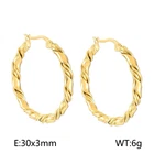 French titanium steel gold-plated earrings Vintage striped C-loop earrings