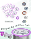 Materials - Food-Grade, Tear-Resistant, and Leak-Proof: Crafted from premium food-grade aluminum foil, our lids are designed to prevent tearing and leaking, ensuring a flawless seal for your reusable k cups for keurig every time. Craftsmanship - Precision-Crafted and Thoroughly Tested: After over 100,000 tests, we’ve perfected thickened aluminum foil, engineered through advanced techniques to seamlessly fit Keurig kcup Pods. This ensures optimal sealing and enhances the brewing of delicious coffee. DIY Versatility - Rich In Crema and Delightful Drink: Enhance your coffee’s richness and crema with these foils, allowing you to customize your brew. Perfect for coffee enthusiasts looking to craft their ideal cup at home. Cost-Effective- Save Money and Save the Planet: Reuse your K Cup pods with lids, reducing waste and saving money. A simple step towards a more sustainable coffee routine. Our products are certified by SGS and FTT, ensuring peace of mind for your safe use. Performance - Easy to Use with Exceptional Sealing Capability: The user-friendly design makes sealing effortless, and the airtight seal preserves freshness and flavor, giving you a consistently delicious cup of coffee. NOTE: Only Foils! NOT CONTAIN Pods. Only Fit Reusable KCup Pods.