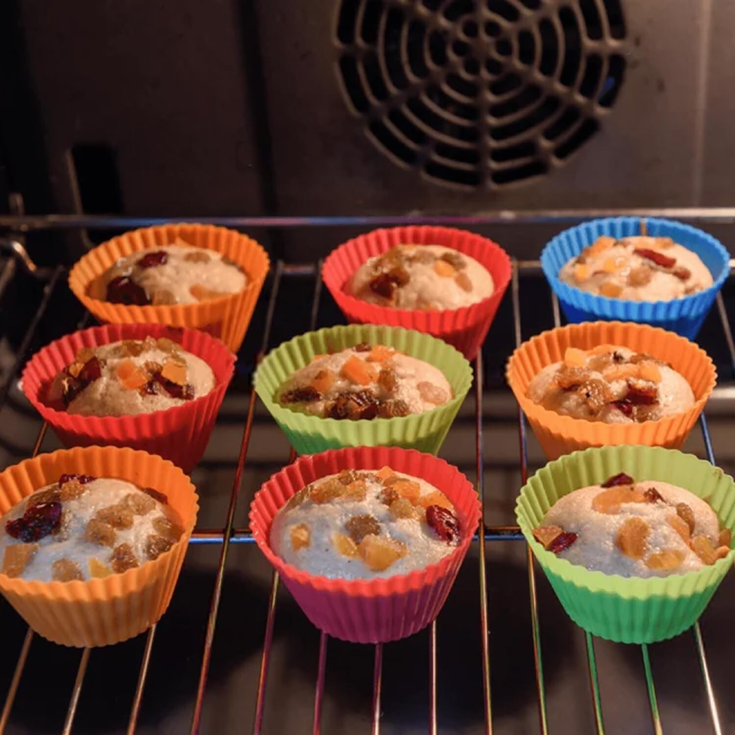 Reusable Silicone Baking Cups Set, Non-stick Muffin Liners Cake Cup Mold, BPA-free, Round 2.75 inch, 12 Pack 6 Colors - Red, Orange, Yellow, Green, Blue, Purple Product Details Size: 12 Pack Multicolor Brand: Mikim MPN: MKBC12-1 UPC: Does not apply EAN: Does not apply Color: Multicolor Brand: Mikim Material: Silicone Reusability: Reusable Occasion: Easter, Wedding, Anniversary, Birthday, Valentine's Day Color: Multicolor Brand: Mikim Material: Silicone Reusability: Reusable Occasion: Easter, Wedding, Anniversary, Birthday, Valentine's Day Material Feature: Non-Toxic, Odorless Shape: Round Size: 12 Pack Multicolor Manufacturer: Mikim Number of Items: 1 Item Diameter: 2.75 Inches Item Weight: 3.84 ounces Country of Origin: China Item model number: MKBC12-1 Date First Available: April 22, 2024 12 Pack Silicone Baking Cups: Mikim round silicone muffin cups ideal for baking muffins, cupcakes, pudding, tart, bread, mousse, jelly or as snack cups. Great for most of parties, wedding, birthday, baby shower, housewarming, catering, marathon, Halloween, Thanksgiving, Chrismas baking sessions Premium: Our reusable muffin liners made of food-grade, BPA-free silicone. Usually works with most standard muffin pans Easy Release and Cleaning: Silicone muffin cupcake molds are non stick and easy release to make popping out perfectly shaped baked treats a breeze. Clean simply, stuck-on messes fall off easily with just a bit of soap, and dishwasher safe Dimensions and Multicolors: Each baking cup top diameter 2.75 inch, bottom diameter 1.77 inch, height 1.26 inch, set of 12 pack, 6 rainbown colors, 2 cups of each color: red, orange, yellow, green, blue, purple, that add vibrant colors to your kitchen and cheer you up Mikim 12 Pack Silicone Baking Cups Mold Muffin Liners Cake CupsSHAPE:Round silicone muffin cupcake baking cupsSIZE:Regular and Standard Silicone Muffin CupsTop diameter: 2.75 inchesBottom diameter:1.77 inchesHeight: 1.26 inchesCOLORS:SET OF 12 PACK, 6 RAINBOWN COLORS:2 Red, 2 Orange, 2 Yellow, 2 Green, 2 Blue, 2 PurpleUSE SAFE:Temperature safe from -40°F to +450°F(-40℃ to +230℃).Oven SafeMicrowave SafeAir Fryer SafeFreezer SafeDishwasher SafePREMIUM & REUSABLE:Food grade silicone, BPA free, no smells, thickened quality will not deform or tear. Mikim baking cups are reusable, can be used for thousands of times. Save money for you comparing with disposable paper cups.FLEXIBLE & EASY CLEANING:Non-stick soft silicone make popping out perfectly and shape baked treats a breeze, easy to clean with water or dishwasher.MULTI- PURPOSE:Along with cooking, baking, and air fryer frying, our baking cups are also perfect for crafting, painting, sorting small items, wax melts, molds, etc.USE IN MANY OCCASIONS:Great for most of parties, wedding, birthday, baby shower, housewarming, catering, marathon, Halloween, Thanksgiving, Chrismas baking sessions.NICE GIFTS:Exquisite and chic kraft paper and packaging, can be conveniently given as gifts to family and friends who love baking.