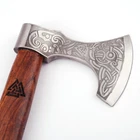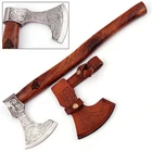 Description: Unleash the spirit of the Norse with the Revenge of Calder Viking Axe . Inspired by the legend of Aegir, the unforgiving sea god, this axe is a tribute to Viking courage and their fabled battles at sea. With its carbon steel axe head etched with tales of the Draugr and a Sheesham wood handle adorned with Valknut engravings, this battle-ready axe is perfect for collectors, reenactors, or Viking enthusiasts. Crafted with precision and durability, the Revenge of Calder is more than just a weapon—it's a piece of Norse history brought to life. Specifications: Overall Length: 20.25 inches Weight: Approx. 3 lbs Axe Head Length: 6.5 inches Blade Length: 4.5 inches Handle Length: 18.5 inches Key Features: Battle-Ready Design: Sharpened carbon steel blade, ready for action or display. Intricate Engravings: Axe head etched with a sea-faring tale of the Draugr’s demise. Durable Sheesham Wood Handle: Sturdy construction with a smooth finish. Valknut Symbol: Engraved on the handle and axe head, representing the binding of the slain. Functional Lanyard Hole: Ensures secure handling, even in the harshest conditions.