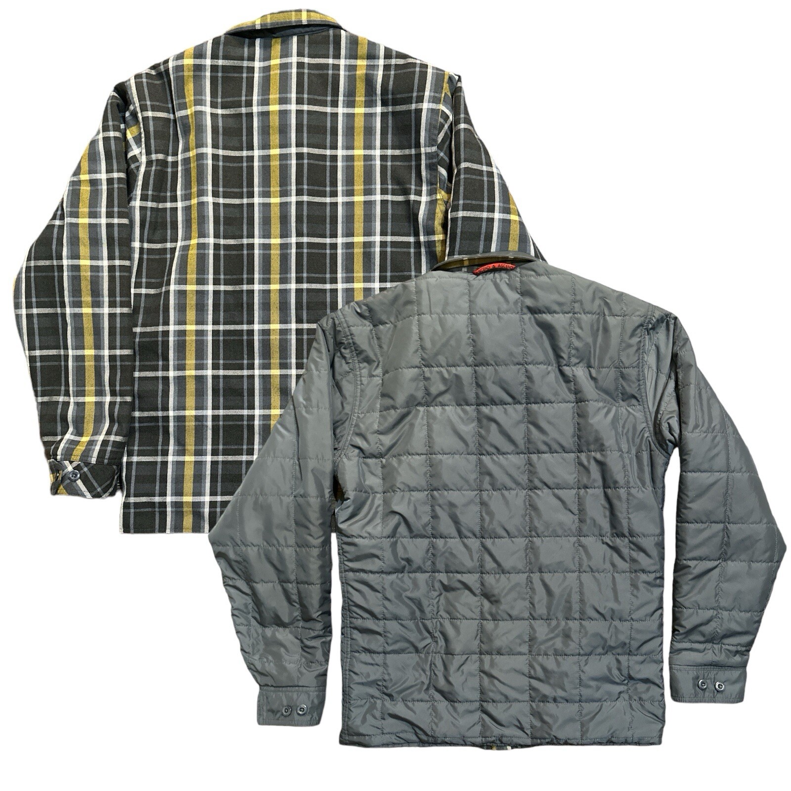 Please see pictures for an knacker description. Same-day business shipping. Pet free smoke free shipping home. Thank you so much for your interest. If you have any questions, please feel free to ask. This Ascend puffer jacket is the perfect addition to your outdoor wardrobe. With a spread collar, full zip closure, and hooded design, it's both functional and stylish. Made from nylon with a flannel fabric type, it features a multicolor plaid pattern, embroidered logo, and zipper accents. Ideal for travel, casual wear, and work, this mid-length jacket is warm and comfortable, with a warmth weight of 300. The jacket is machine washable, has a chest size of 44 inches, and is available in size small. Whether you're hiking in the mountains or camping in the woods, this Ascend puffer jacket is the perfect choice for any outdoor adventure.