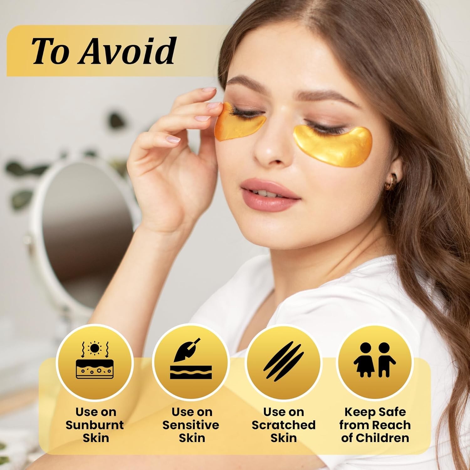 About this item 20 PAIRS UNDER EYE PATCHES - In this pack you get 40 pairs of our Golden Glow Eye Mask for a complete treatment that lasts, to prevent the formation of wrinkles and 24K nano gold with a protective effect helps prevent your skin from sagging. SMOOTHING YOUR SKIN - These Maskiss under eye patches are highly efficient for eye skin care treatments that will quickly work against skin aging, flat wrinkles & fine lines, eliminate dark circles, remove puffiness, and speed up the cell and collagen rejuvenation. EASY TO USE - 3 step process: 1) Clean your face and eyes with warm water, 2) put the eye patches under your eyes and press gently to secure them, Keep it for 20 minutes. 3) remove the eye patches and gently pat the remaining essence. Twice a day or at least once a week. TRAVEL FRIENDLY - Each pair comes packed separately Our eye mask comes in a compact travel-size pack, making it easy to take with you wherever, whenever you’re on the go. SAFE & SOUND - Created with a blend of collagen, 24K gold hyaluronic acids, and a variety of natural plant extracts that deeply repair the eye skin, help soothing, rejuvenate & protect your skin around your beautiful eyes without any side effects. Item Form Patch Material Type Free Paraben Free Skin Type All Special Feature Clinically Tested Product Description
