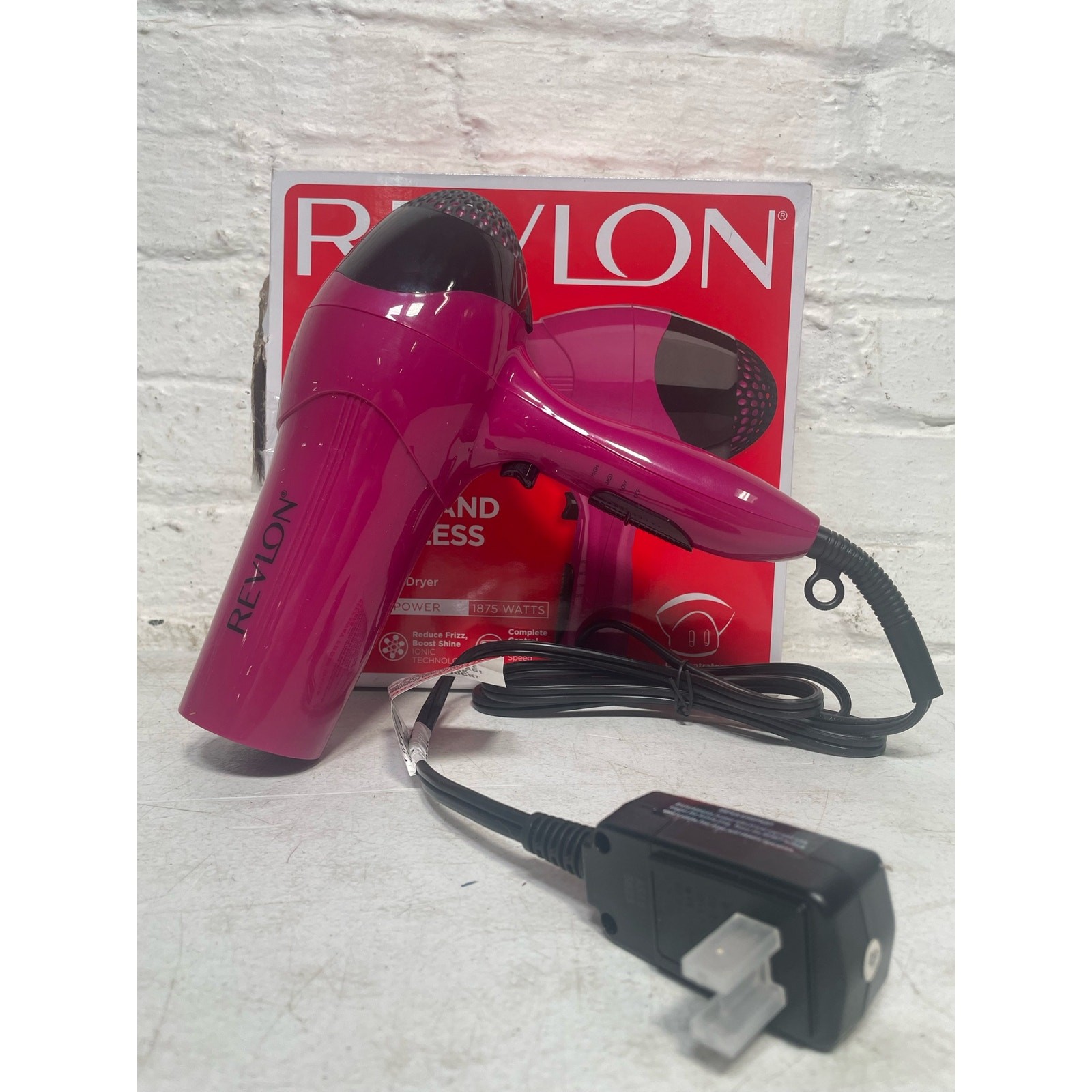 Brand:REVLONSeller Notes:“Used Good Condition, MISSING Smoothing Concentrator”gtin13:761318004745Power:1875Power Source:ElectricNumber of Temperature Settings:3Color:PinkUPC:761318004745Type:Standard Hair DryerNumber of Speeds:3MPN:RV474WMT4Features:Ionic Technology