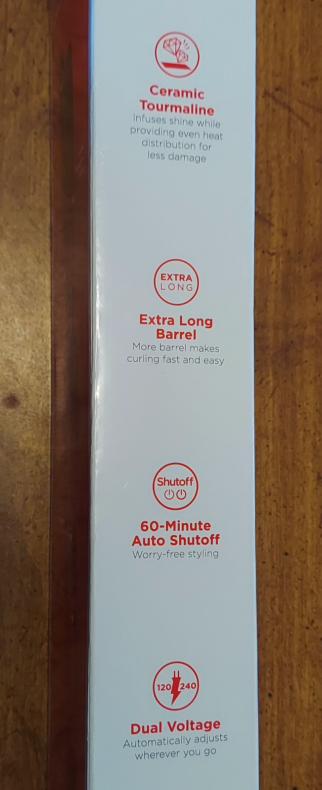 5 Preset Temps: Heat recommendations by hair type to achieve your look while avoiding heat damage. TruGuard Technology: Helps prevent color fade*. (*Based on testing by an independent third-party lab comparing use at 400°F vs. 425°F.) Ceramic Tourmaline Plates: Infuses shine while evenly distributing heat for less damage. Extra-Long Barrel: More barrel makes curling fast and easy. Dual Voltage: Adjusts automatically wherever you go.