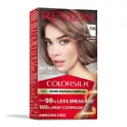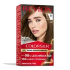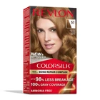 Revlon ColorSilk Beautiful Color Long Lasting Permanent Hair Color-(Choose Your Colors) Description: No mess, non-drip formula for easy to use at-home color application. ColorSilk Beautiful Color is the #1 hair color in the USA*. The ammonia-free hair color delivers 100% gray coverage and salon-quality color and shine. Achieve rich, long lasting hair color at home! Hair is left silky, shiny, healthy and in better condition than before you colored it after each box. Revlon’s 3D Color Gel Technology delivers natural looking, multi-tonal color from root to tip providing definition and boosting your hair’s dimension. *Revlon Consumer Products Corporation’s calculation based in part on data reported by Circana, LLC, through its OmniMarket Service of Total US Multi-Outlet for Women’s Hair Coloring Category for the 52-week period ending 3-24-2024 using Revlon’s custom definitions. +Formulated without adding Ammonia About Product: Nourishing, ammonia-free hair color formula is infused with Keratin and Silk Amino Acid to leave hair in better condition than before you colored it Revlon’s 3D Color Gel Technology delivers 100% gray coverage and rich, natural-looking, multidimensional color with shine that lasts No-mess, non-drip formula and precision applicator for easy to use at-home color application from root to tip 41 natural-looking shades including shades of black, brown, blonde, red, and ultra-lights, so many beautiful colors and trend shades! Specification: Features Easy-to-Use Assembled Product Dimensions (L x W x H) 3.44 x 1.94 x 6.13 Inches Instructions: Everything you need is inside the box! See directions to follow all safety instructions before you begin. Step 1 Mix : Pour ammonia-free colorant in cream developer bottle. Shake until mixture is completely blended. Step 2 Apply : Part hair into 4 equal sections. Apply mixture to root area at each parting. Don't rub into scalp. Step 3 Leave in : Leave the mixture on hair for 25 minutes total. For resistant gray hair, leave on for extra 10 minutes. For blonde shades, add an extra 20 minutes to total processing time. Step 4 Rinse : Add a little warm water to hair and gently massage color mixture through hair. Rinse hair completely. Step 5 Conditioning: Apply the ultra-hydrating cream conditioner after color application. Leave on for 3 minutes and then rinse with warm water.