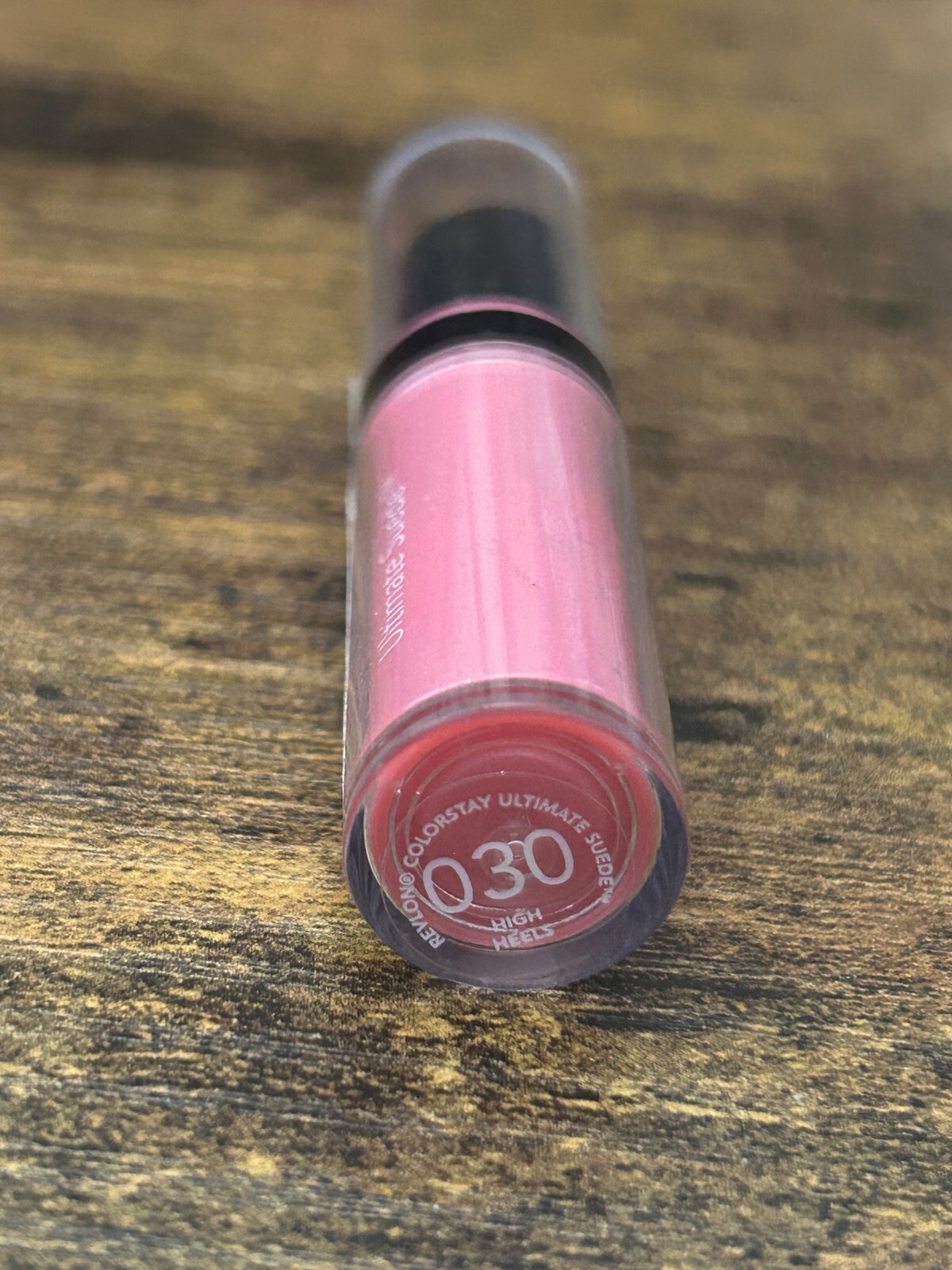 Revlon ColorStay Ultimate Suede Lipstick 30 High Heels This food-proof, longwear lipstick simply won’t budge. Wear it all day long and it stays on The moisturizing formula is infused with shea butter, aloe, and vitamin E to instantly hydrate lips Swipe on the smooth, velvety lip color that always feels good on your lips The all-day color mimics the soft look of luxurious suede