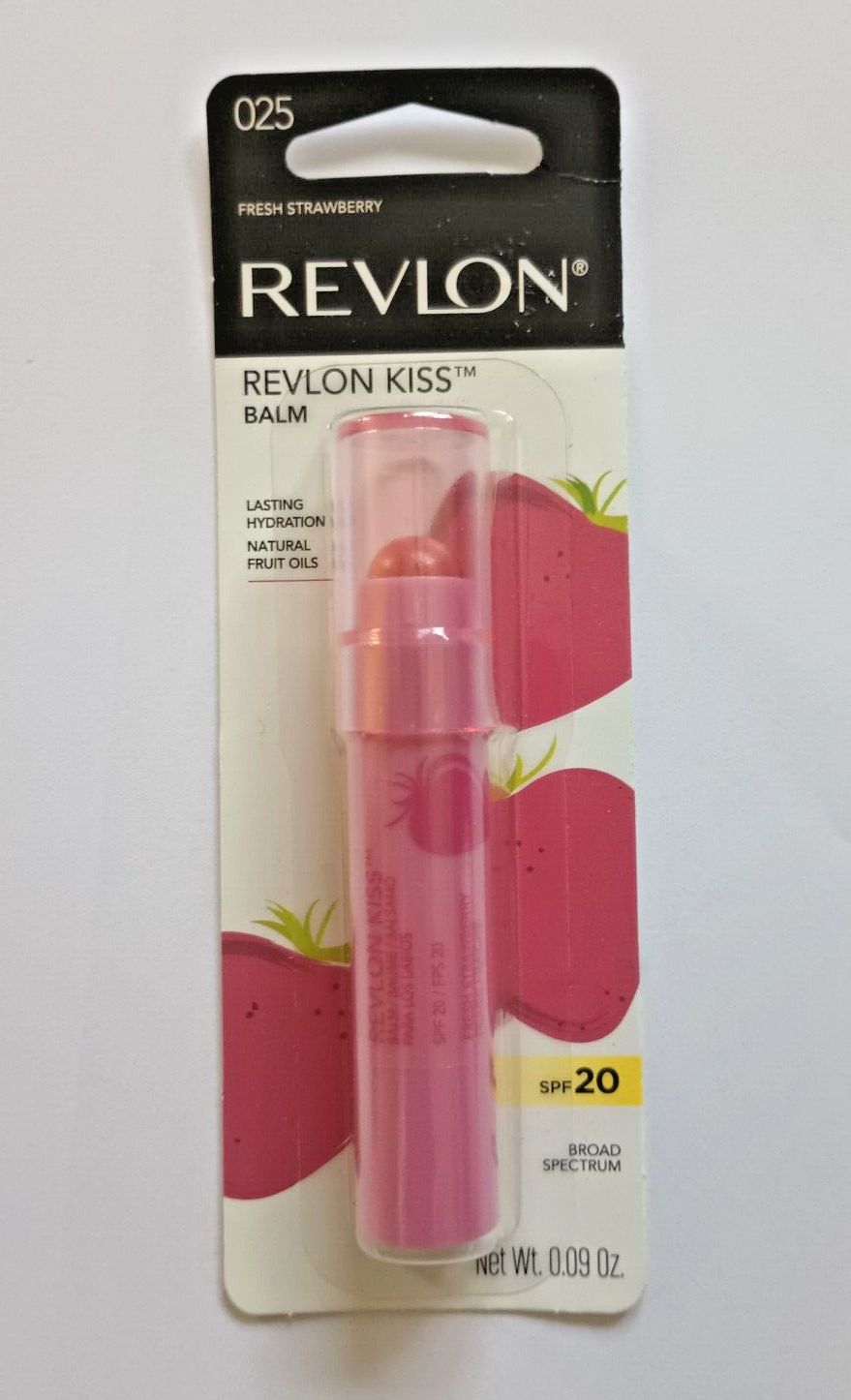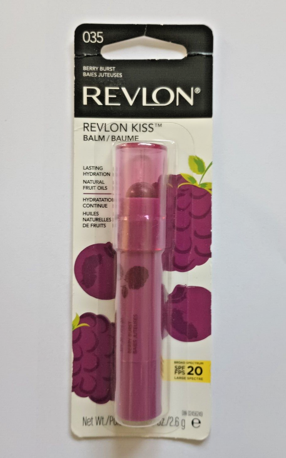 Revlon Kiss Balm (LOT OF 3) 1-Juicy Peach 015 1-Fresh Strawberry 025 1-Berry Burst 035 ULTRA HYDRATING FORMULA: Our lip balm is packed with hydration and infused with natural fruit oils. This Revlon lip balm shields lips with a protective barrier so your lips instanly feel moisturized. SHEER AND JUICY LIP COLOR: This lipbalm color is sheer and juicy all at once with a subtle, pretty tint. Each crayon balm has a tasty, fruity flavor.