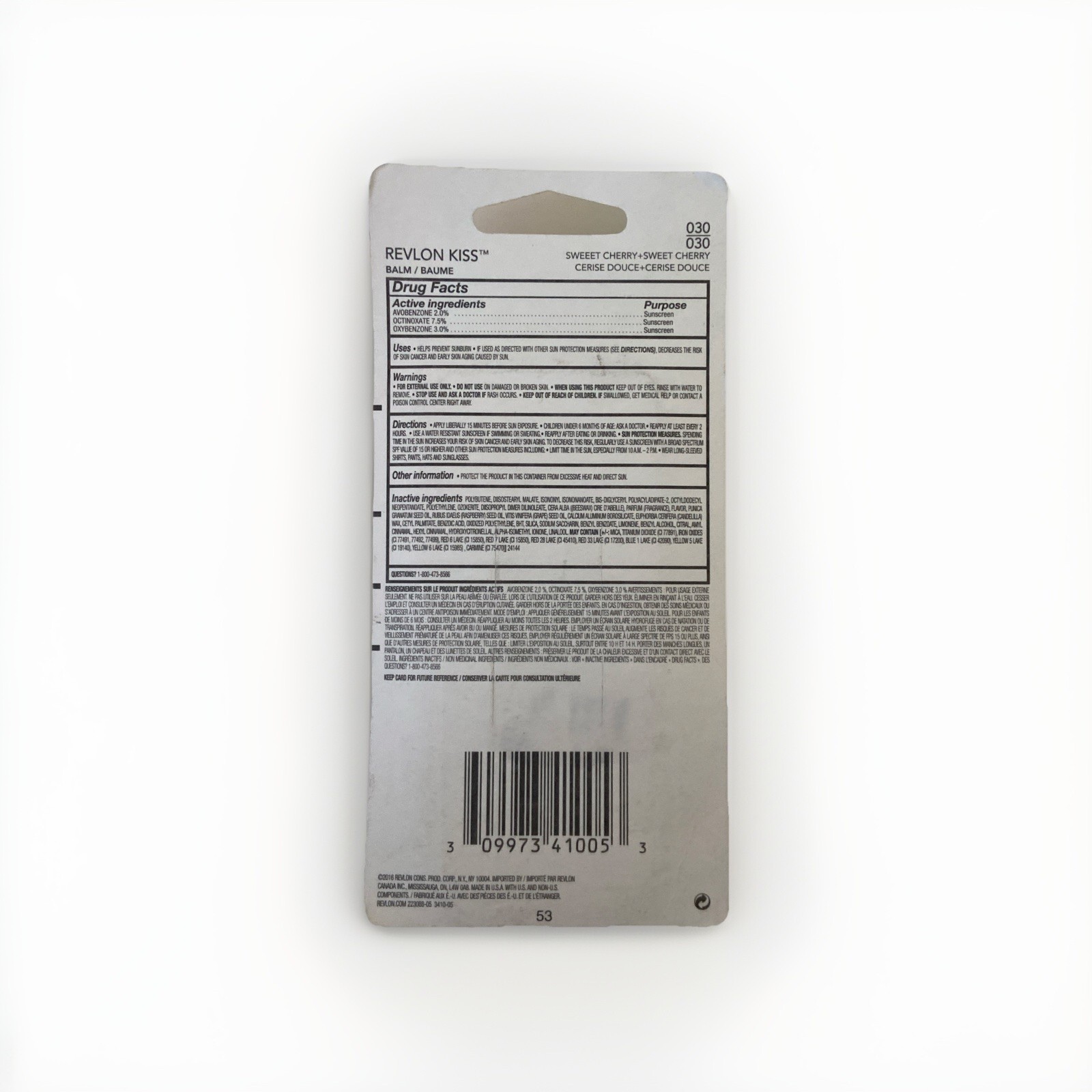 Revlon Kiss Lip Balm #030-Sweet Cherry Broad Spectrum SPF20 Sunscreen. Lasting Hydration. 2 Pack Special Value 0.09 oz each. Rare See pictures. Ship with USPS Ground