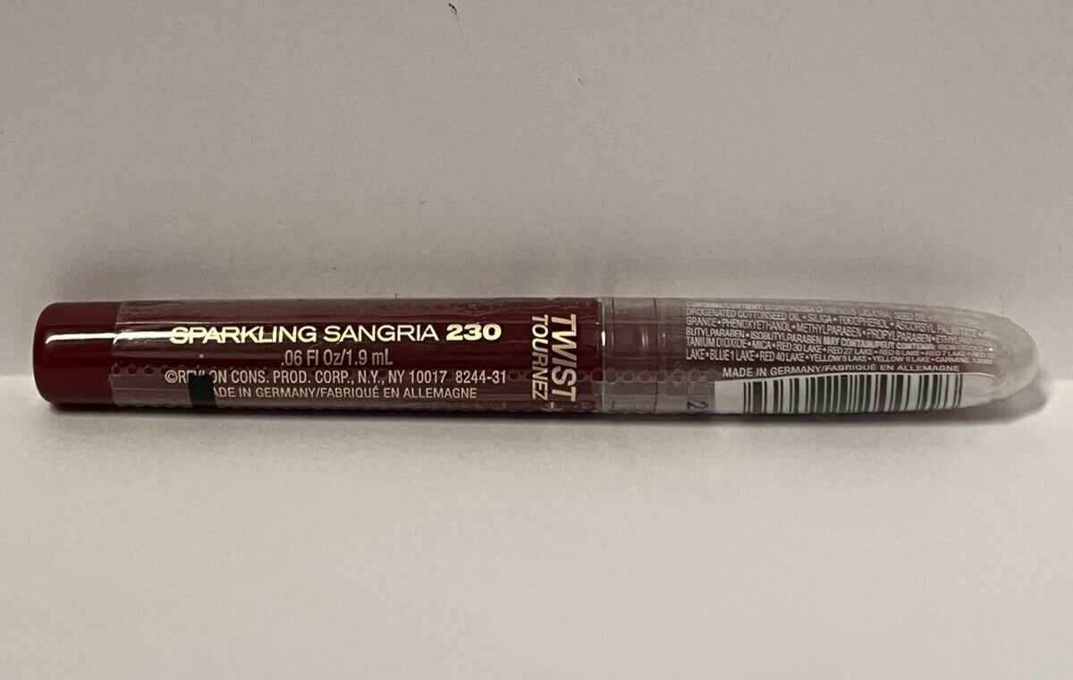 Scent:UnscentedVolume:.06 fl ozMPN:230 SPKLNG SNGRAPeriod After Opening (PAO):12MExpiration Date:N/AFlavor:UnflavoredFeatures:Long LastingBrand:Revlongtin13:Does not applyModel:LipGlide 230Size:StandardEffect:ShineUPC:Does not applyFormulation:LiquidCountry/Region of Manufacture:United StatesType:Lip GlossProduct Line:Revlon LipGlide Full Color + ShineShade:Sparkling Sangria