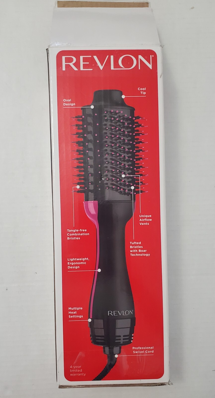 Product Description The original blow-dry brush, the Revlon One-Step™ Volumizer, creates salon-quality blowouts in up to half the time*. Improved motor life. Dry, smooth and style your hair in up to half the time with 36% less breakage**. Say goodbye to flat, dull strands — this blowout brush gives your hair 22% more shine*** while boosting volume and lift. The natural and nylon bristles slide through your locks while smoothing frizz and infusing shine for oh-so-healthy-looking tresses. This super-fast hot air brush takes you from damp to styled in one step. A time- and money-saving hair tool, skip the salon and create beautiful blowouts yourself with the Revlon One-Step™ Volumizer. *Versus drying and styling separately. **Based on third-party testing of a leading blow-dryer brush in the market. **