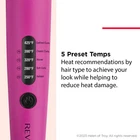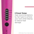 Simplify your styling routine with the new Revlon Easy Heat precision curling iron. Ideal for color treated hair, the 1.25” TruGuard barrel helps reduce color fade. With temps up to 425°F, this precision curling iron styles all hair types. Just choose from the five preset temperatures to use the right level of heat for your hair type and help reduce heat damage while achieving your desired look. The extra-long barrel curls long hair fast but it’s also great for curling shorter styles because it reaches back-of-the head sections with ease. Featuring ceramic tourmaline technology, heat is evenly distributed across the barrel for less damage while infusing shine for a glossy, polished final look. *Based on testing by an independent third-party lab comparing use at 400°F vs. 425°F 5 PRESET TEMPS: Heat recommendations by hair type to achieve your look while helping to reduce heat damage. TRUGUARD TECHNOLOGY: Helps prevent color fade*. CERAMIC TOURMALINE BARREL: Infuses shine while evenly distributing heat for less damage. EXTRA LONG BARREL: More barrel makes curling fast and easy. AUTO SHUT OFF: 60-minute Auto Shutoff: Provides safety and peace of mind. DUAL VOLTAGE: Adjusts automatically wherever you go.