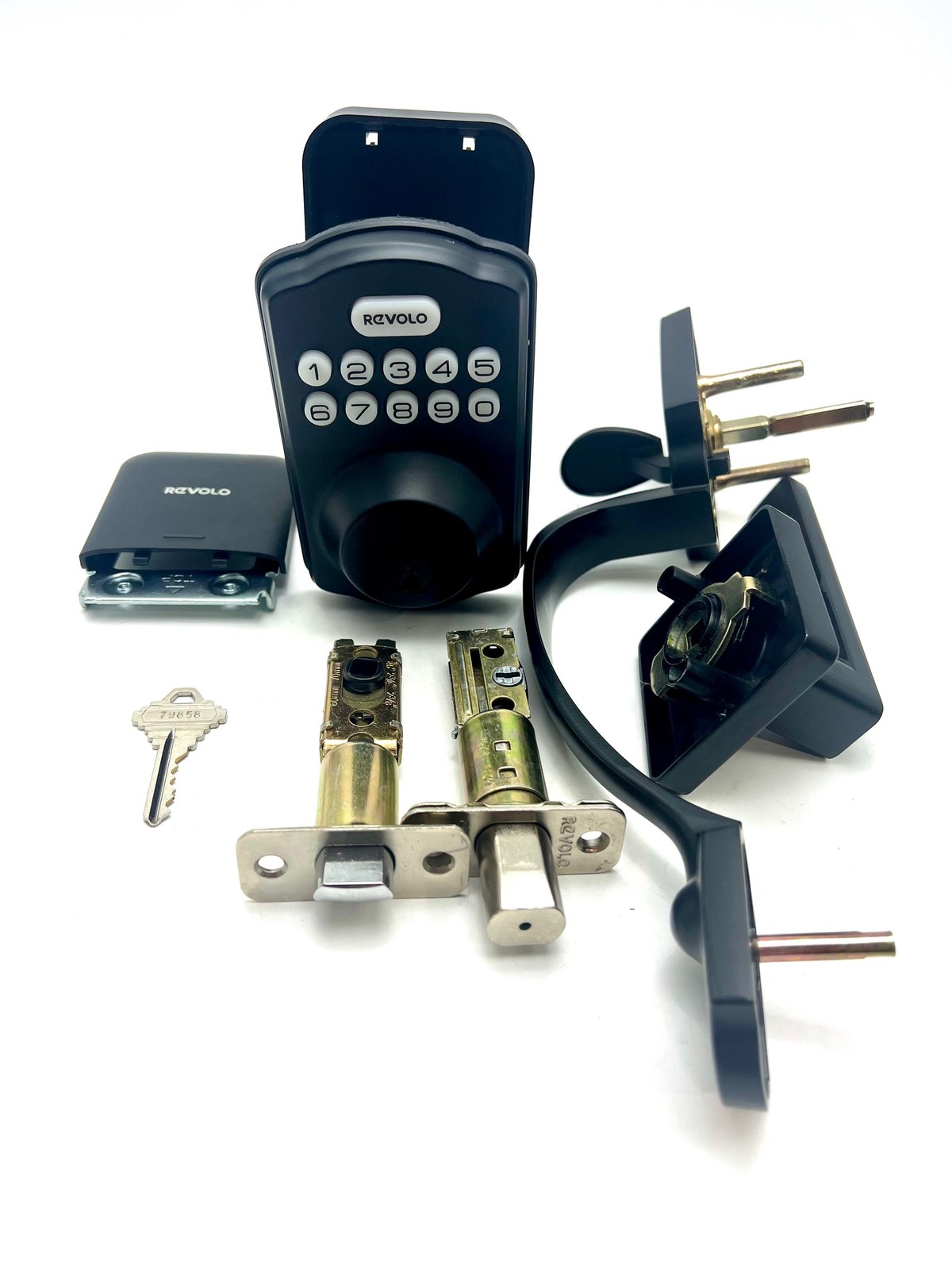 FAST & FREE SHIPPING ON ALL ITEMS! 100% SATISFACTION EXCELLENT CUSTOMER SUPPORT SAFE & SECURE Our eBay Store About Us Contact Us Add to Favorite Sellers Revolo RE001 Electronic Keypad Deadbolt Keyless Entry Auto Lock - Scratch & Dent Product Details Condition The item in this listing is a Scratch & Dent: the unit powers on with factory settings restored and may not include the original accessories. It may have cosmetic scratches & dents to the body of the unit and surface scratches on the screen. This will not impair use of the device. Product comes with a Minimum 30 days warranty • Keyless Entry: This keypad deadbolt provides 20 access codes for family members and a temporary code for the one-time guests. This is the best solution for Airbnb, vacation rentals or family homes. • Auto-Locking: The Anti-peeking password feature ensures your home security, Automatic lock or one-touch-locking effectively avoids the incomplete lock. This keypad door lock allows you to set automatically lock in 10-99 seconds or apply 1 touching motorized locking, • Easy Installation - Revolo front door lock set comes with adjustable latch to fit most standard door preparations, including necessary hardware components. You can install it easily with just a Phillips head screwdriver. • Stylish Design: This digital lock adds taste to your building with its unique shape lock and high-quality atmospheric handle combination. You won't need to buy an extra door handle. • Built to Last: With a sturdy zinc alloy, Electronic Keypad Deadbolt was tested to handle the comings and goings of a busy household for over 30 years. Its IP65 rating makes it weather-resistant to keep your front door protected, no matter rain or shine. • Revolo RE001 Electronic Keypad Deadbolt Keyless Entry Auto Lock - Black