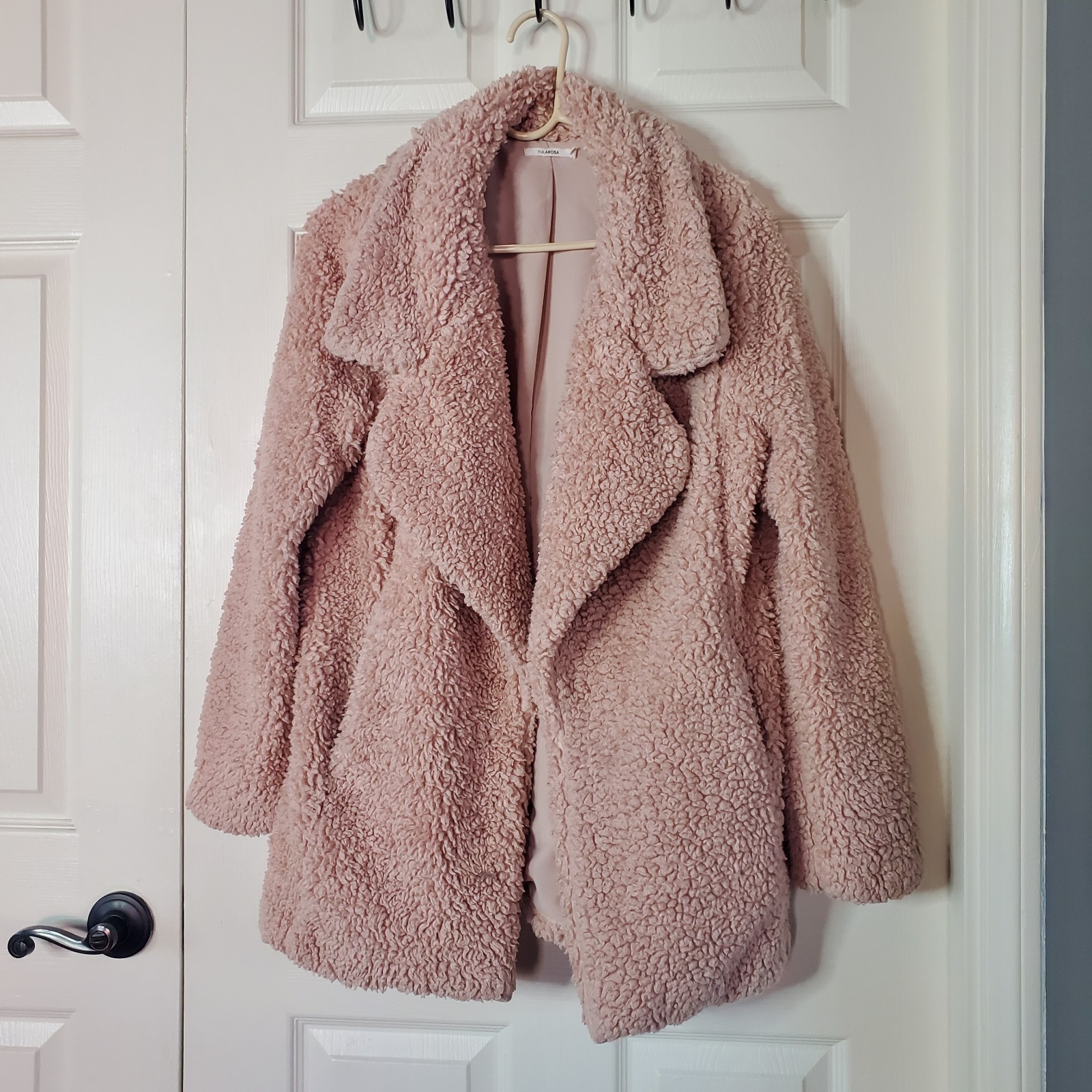 Soft and plush teddy jacket. Perfect for layering. Adds warmth and style. Two side pockets, lined, in very good condition. Please see pictures for details and let me know if you have any questions I ship the next business day