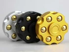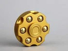 A 6-shooter revolver cylinder design. With a medium fidget spinner and removable brass weights Available in silver, black, and orange colors. All of the weights are gold / brass colored Its spin is very smooth, but remove a single weight and it can have a substantial wobble making it very fun and dynamic. Size: 1.75in (45mm) x .75in (19mm) Weight: 2.6oz (74g) Bearing: Stainless r188 Spin Time Testing Average: 3:30 Noise Level (1-5): 1 Fidget in peace to relieve stress, ADHD symptoms, or just to have fun.