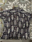 gorgeous material. 100% spun rayon fun pattern has touches of bright blu ish purple and maroon on the black and brown. Men's size XLC measurements in photos great condition no damage.