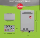 The Rheem ECO200XELP-3 Performance Plus High Efficiency Outdoor Liquid Propane Tankless Water Heater can provide up to 9.5 GPM at a 35° temperature rise. The 199,900 BTU High Efficiency Liquid Propane Tankless Water Heater is designed to supply continuous, on demand hot water for up to 3 bathrooms at the same time. It heats water only when it's needed and has a 0.82 uniform energy factor. Plus, it's smart: built-in Wi-Fi Technology provides valuable alerts and control from anywhere with a smart phone. This compact water heater may be eligible for local utility rebate programs. This model's outdoor design requires no additional venting and features freeze protection to -30°F. Please the specifications to view the Rheem Brochure Guide which will help you in your buying decision to ensure that you purchase the right tankless hot water heater model for your household needs. Continuous hot water: Rheem performance plus tankless water heaters heat water when you need it, for as long as you need it Outdoor model: outdoor tankless gas water heaters require no additional venting Saves water: save up to 1,100 Gal. of water per year with our exclusive water savings setting Saves energy: tankless water heaters heat water only when you need it which saves on energy costs, this model is up to 34% more efficient than a standard 50 Gal. gas tank water heater (based on comparison of Rheem RTG-series models against a standard residential 50 Gal. tank model with like fuel type; LP models may be higher) 9.5 GPM (Gallons Per Minute) can provide enough hot water to supply up to 3 bathrooms at the same time (at a 35° temperature rise) Smart: built-in Wi-Fi technology provides valuable alerts and control, like temperature settings, from anywhere with a smart phone (Rheem econet app required) Easy to own: our maintenance notice setting alerts you with a flashing warning code when it is time to call for a regular service check and our hard water build-up indicator automatically displays a service alert if scale build-up is detected Warranty: 15-year heat exchanger, 5-year parts and 1-year labor warranty (registration required; see warranty for details) Installs outside for easy replacement of your existing outdoor unit and frees up space inside Environmentally friendly ultra-low NOx burner meets SCAQMD rule 1146.2 requirements Hot start programming helps to minimize fluctuation in water temperature during periods of frequent on/off operation High-altitude capability up to 7,800 ft. elevation above sea level Electricity required: supplied with a 120-Volt power cord Return Policy California residents see Prop 65 WARNINGS Product Information Internet # 325309446 Model # ECO200XELP-3 Store SKU # 1009624834 E-14