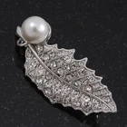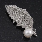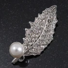 Rhodium Plated Diamante/Simulated Pearl 'Leaf' Brooch - 5cm Length Treat yourself to the transformational beauty of this unique Rhodium Plated Diamante/Pearl 'Leaf' Brooch. Featuring a delicate leaf design, crafted in rhodium plated metal and decorated with a large, single white faux pearl. The leaf pave set with clear Swarovski crystals, providing a dazzling look. The brooch measures about 5cm x 2cm and fastens with a bar/swivel clasp. Brooches like this are pieces you'll treasure for years to come. Murzana offers a great selection of fashion and costume jewellery: affordable everyday necklaces, chokers, bracelets, bangles, armlets, rings, earrings, brooches, hair jewellery and other accessories. We invite you to check our whole range and decide on your favourite items by adding the them to your wish list or straight to your basket! Rhodium Plated Diamante/Simulated Pearl 'Leaf' Brooch - 5cm Length product code: B02407 occasion: cocktail party, mothers day, casual wear metal finish: rhodium plated gemstone: faux pearl, diamante theme: leaf collection: floral wear on: apparel, bag, lapel fastening: rotating pin clasp length: 5.0cm (1.97") width: 2.0cm (0.79") weight: 9g (0.32oz) DESCRIPTION Treat yourself to the transformational beauty of this unique Rhodium Plated Diamante/Pearl 'Leaf' Brooch. Featuring a delicate leaf design, crafted in rhodium plated metal and decorated with a large, single white faux pearl. The leaf pave set with clear Swarovski crystals, providing a dazzling look. The brooch measures about 5cm x 2cm and fastens with a bar/swivel clasp. Brooches like this are pieces you'll treasure for years to come. ALTERNATIVE VIEWS OUR PROMISE We take every effort to ensure that you receive a product without any defects or faults. On a rare occasion where the item was damaged during shipment or there is a manufacturing fault, please contact us to arrange a free return. We will refund you for the faulty item and its postage so that you are never left out of pocket. PAYMENT We accept all standard payments that are facilitated by Ebay. ORDERING AND SHIPPING We deliver world-wide using Royal Mail services. Your order will be dispatched on the same working day if we receive your payment by 2pm (UK time). Items purchased after 2pm on Friday and on the weekend will be shipped on the following Monday. For shipments outside of the UK we can combine your shipping costs for multiple items, so that you pay just one shipping cost for the entire order. Please request a total from us by clicking on a relevant link at the checkout. RETURNS You may return this product for a full refund within days of purchase date. Please follow our returns procedure to return the goods. CUSTOMER SERVICE AND FEEDBACK We are committed to provide the best customer service and to deliver 100% customer satisfaction . If for any reason you are not satisfied with your purchase, please contact us first before leaving a negative feedback. We strongly believe that all issues can be resolved in a positive way.