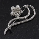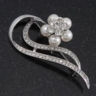 Rhodium Plated Simulated Pearl/ Crystal Flower Bridal Brooch - 6cm Length Add a chic finishing touch to your outfit with this gorgeous Rhodium Plated Pearl/ Crystal Flower Bridal Brooch Featuring a floral design, crafted in rhodium plated metal and accented with clear crystals on the leaves. The flower made of five large pearls and six round cut, clear Swarovski crystals, offering a sparkling finish. It measures about 60mm x 30mm and fastens with a flag pin and revolver. This unique floral brooch would also make an exquisite gift for Mother of the Bride as a eternal corsage of special memories and would look divine pinned on the shoulder or sash of a wedding gown. Murzana offers a great selection of fashion and costume jewellery: affordable everyday necklaces, chokers, bracelets, bangles, armlets, rings, earrings, brooches, hair jewellery and other accessories. We invite you to check our whole range and decide on your favourite items by adding the them to your wish list or straight to your basket! Rhodium Plated Simulated Pearl/ Crystal Flower Bridal Brooch - 6cm Length product code: B02401 occasion: bridal, cocktail party, going to theatre metal finish: rhodium plated gemstone: diamante, faux pearl theme: floral collection: floral wear on: apparel, bag, lapel fastening: rotating pin clasp length: 6.0cm (2.36") width: 3.0cm (1.18") weight: 11g (0.39oz) DESCRIPTION Add a chic finishing touch to your outfit with this gorgeous Rhodium Plated Pearl/ Crystal Flower Bridal Brooch Featuring a floral design, crafted in rhodium plated metal and accented with clear crystals on the leaves. The flower made of five large pearls and six round cut, clear Swarovski crystals, offering a sparkling finish. It measures about 60mm x 30mm and fastens with a flag pin and revolver. This unique floral brooch would also make an exquisite gift for Mother of the Bride as a eternal corsage of special memories and would look divine pinned on the shoulder or sash of a wedding gown. ALTERNATIVE VIEWS OUR PROMISE We take every effort to ensure that you receive a product without any defects or faults. On a rare occasion where the item was damaged during shipment or there is a manufacturing fault, please contact us to arrange a free return. We will refund you for the faulty item and its postage so that you are never left out of pocket. PAYMENT We accept all standard payments that are facilitated by Ebay. ORDERING AND SHIPPING We deliver world-wide using Royal Mail services. Your order will be dispatched on the same working day if we receive your payment by 2pm (UK time). Items purchased after 2pm on Friday and on the weekend will be shipped on the following Monday. For shipments outside of the UK we can combine your shipping costs for multiple items, so that you pay just one shipping cost for the entire order. Please request a total from us by clicking on a relevant link at the checkout. RETURNS You may return this product for a full refund within days of purchase date. Please follow our returns procedure to return the goods. CUSTOMER SERVICE AND FEEDBACK We are committed to provide the best customer service and to deliver 100% customer satisfaction . If for any reason you are not satisfied with your purchase, please contact us first before leaving a negative feedback. We strongly believe that all issues can be resolved in a positive way.